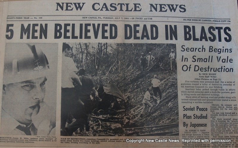 On July 6, 1964 there was an explosion at the American Cyanamid Chemical Plant in Edinburg, Pennsylvania. Five men were killed and many were injured.