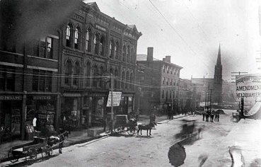 Pictured above is downtown New Castle shortly before the enactment of 18th Amendment. Note the “Prohibition Amendment Headquarters” at the right of the photo.