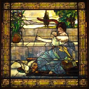 The window was designed by the Rudy Brothers and depicts King David playing his lyre. This impressive work of art has actual harp strings on the lyre.