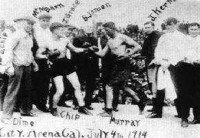 In the above photo, George Chip squares off with a fighter named Murray on July 4, 1914.