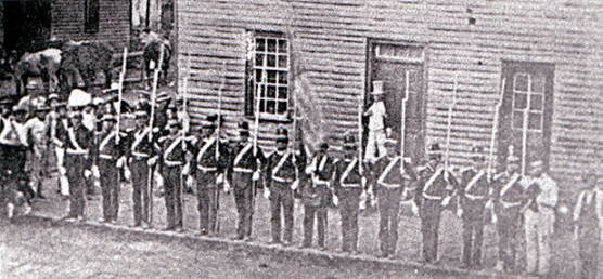 Company B 16th Regiment, Pennsylvania Volunteer Infantry, marched down Court House Hill as they departed for war.