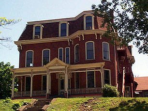 This home was built for John Bower (1821-1906) between 1886-1889. Mr. Bower was a local merchant and tailor. It was one of the first large homes built on the North Hill. This building suffered a fire several years ago. It was formerly owned by attorney Angelo Papa. The current owner is Dezerea Freshwater.